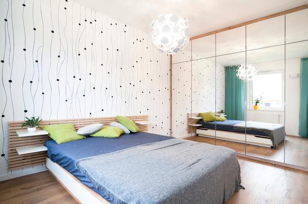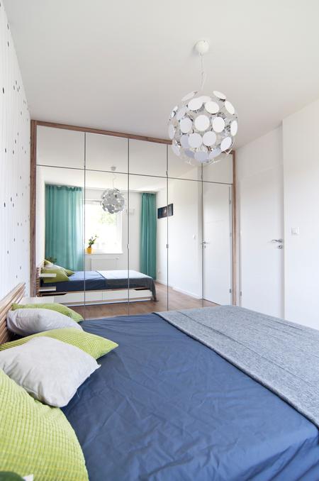 - zabudowie na całą ścianę szafą na wymiar z lustrami
